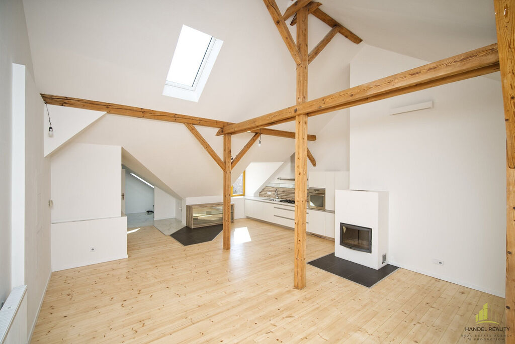 Původní krov bytu přidává na charakteru a jedinečnosti prostoru. Vedle obývacího pokoje se nachází prostorná ložnice a moderně zařízená koupelna, která splní veškeré vaše požadavky na komfort.