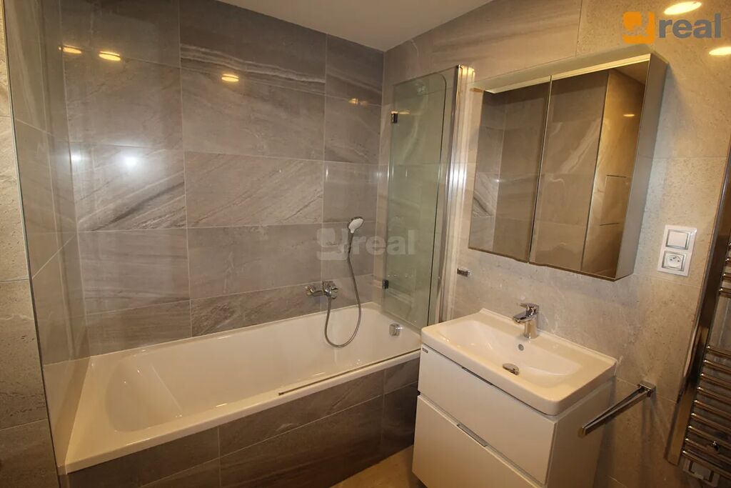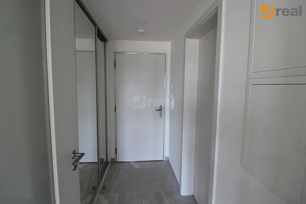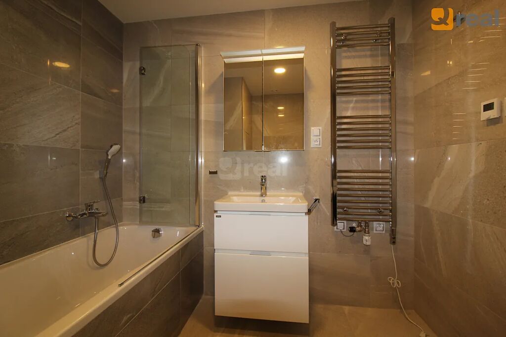 Byt 2+kk 51m2 je vybaven elektrickými žaluziemi s časovým ovládáním, situován ve 4.patře domu se dvěma výtahy. V bytě je moderní kuchyňská linka s indukční varnou deskou, elektrickou a mikrovlnou troubou, myčkou, vestavnou lednicí s mrazákem. Koupelna je s vanou, WC, skleněnou zástěnou, pračkou s integrovanou sušičkou, kosmetickou galérkou, skříňkou s umyvadlem a podlahovým topením. V celém bytě je již nainstalováno osvětlení.