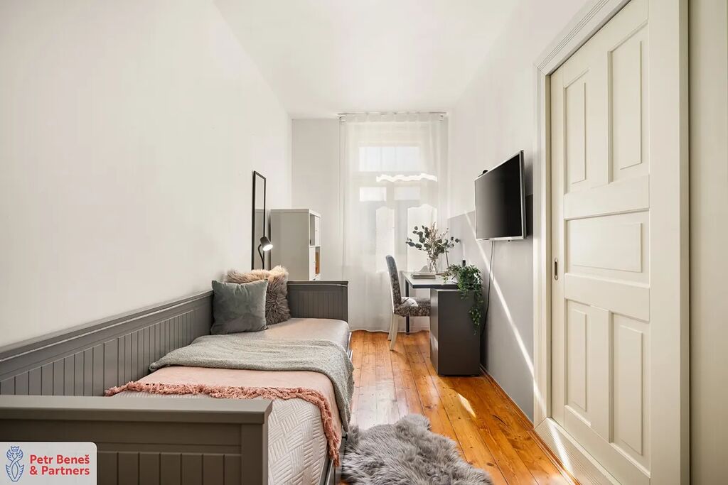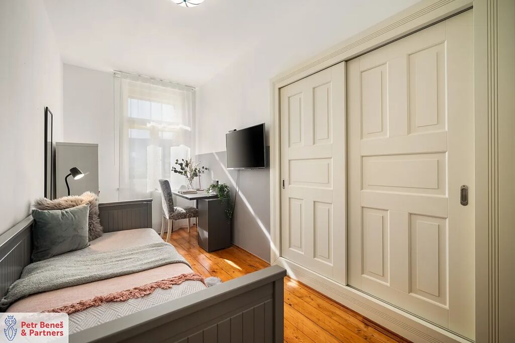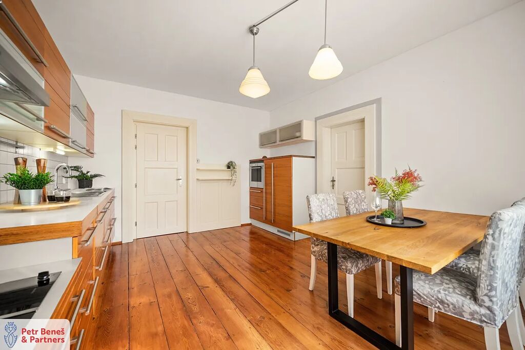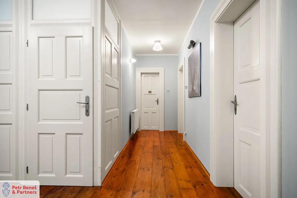 Byt prošel citlivou rekonstrukcí, při níž byly použity kvalitní trvalé materiály. Najdete tu pravé dřevěné podlahy, které provázejí celý interiér a dodávají mu hřejivý charakter. Renovovaná fasáda, špaletová okna - vše působí čistě, elegantně a připraveně k okamžitému bydlení. Interiér nabízí dostatek prostoru pro rodinu i každého, kdo chce žít s lehkostí, ale bez kompromisů. Vysoké stropy, světlo a pocit vzdušnosti vytvářejí domov, který má osobitý styl i přirozenou harmonii.