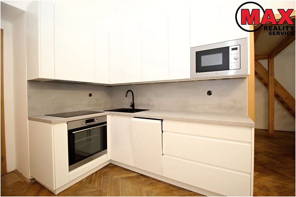 Byt se sestává z prostorné kuchyně, obytné místnosti s velkým patrem na spaní, nové koupelny se sprchovým koutem a WC, předsíně a komory. Byt je zařízený zcela novou kuchyňskou linkou se spotřebiči (indukční varná deska, horkovzdušná trouba, myčka nádobí, mikrovlnná trouba, digestoř). Po domluvě s pronajímatelem je možno doplnit vybavení o lednici a pračku. Vytápění je zabezpečeno radiátory centrálně.