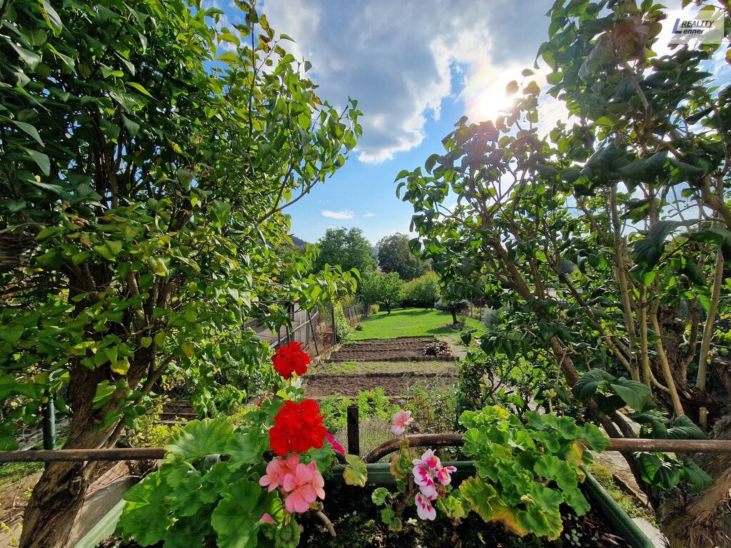 Zahrada je udržovaná, s kaskádovými záhony, ovocnými stromy a keři. Ve spodní části pozemku se nachází dřevěný zahradní domek (7,5 m²) a zděná udírna.