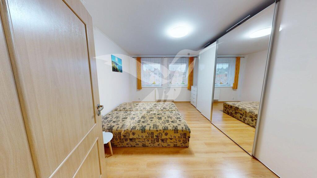 Nemovitost o velikosti 75 m2 se nachází ve 3. NP cihlového bytového domu bez výtahu a skládá se z předsíně, pokoje vč. kuchyňské linky a balkonu, 2x samostatného pokoje, koupelny, toalety a k bytu náleží sklep situován v suterénu bytového domu a také možnost využívat kočárkárnu/kolárnu ve společných prostorách bytového domu. Parkování osobního vozidla je možné přímo před domem.