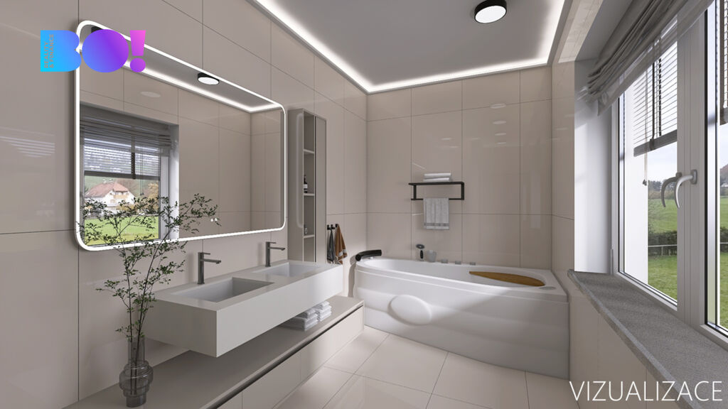 - V horním patře můžete vytvořit klidovou zónu s ložnicemi, pracovnou a velkou koupelnou.