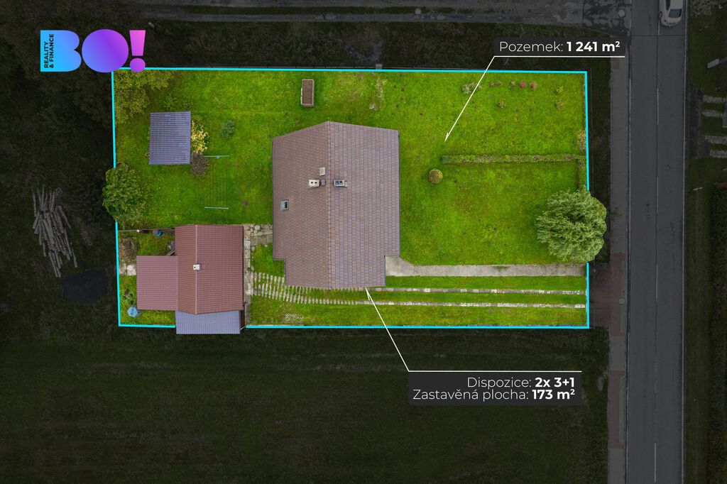 ● Dvougenerační dispozice (2× kuchyně, 2× koupelna, 6 pokojů)