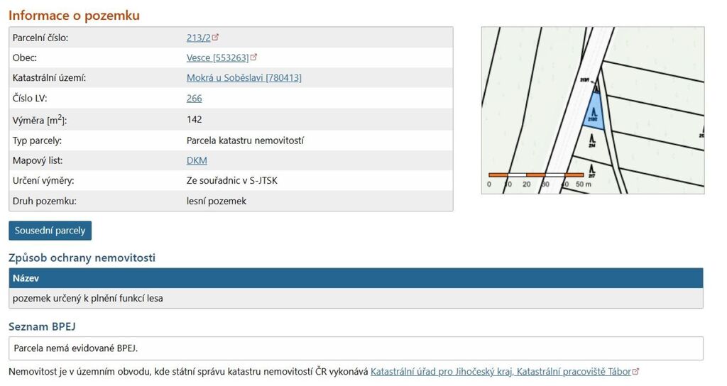 Nabízíme k prodeji soubor lesních pozemků v obci Vesce v katastrálním území Mokrá u Soběslavi, jde o spoluvlastnický podíl 5/6. Jedná se o 6 pozemků vedených jako lesní pozemek.