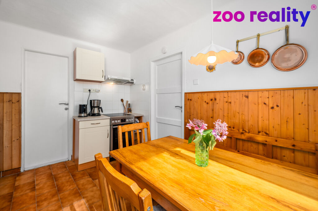 Nabízíme k prodeji rodinný dům, původní zemědělskou usedlost, která je určená k tvalému bydlení, k rekreaci, nebo i podnikání. Vnitřní dispozice obytné části nemovitosti je 3+1. Přímo v obytné částí je k dispozici koupelna se sprchovým koutem a WC a technická místnost - komora. Nemovitost nabízí možnost dalšího výrazného rozšíření obytné části v přízemí i do podkroví. Dům je vytápěn moderním plynovým kondenzačním kotlem a topný okruh lze připojit i na kotel na tuhá paliva. Na obytnou část navazuje velká stodola, která má betonovou podlahu a nabízí široké možnosti využití, např. parkování většího počtu vozidel nebo strojů, skladování materiálu, menší truhlářská nebo zámečnická výroba. Ve dvoře naproti domu je další stavba původních chlévů a černá kuchyně, která může být opět využita mnoha způsoby. Ve dvoře je venkovní posezení. Dvůr je ze tří stran uzavřený a otevřená strana směřuje na vlastní pozemek, takže prostor dvora poskytuje maximální soukromí a je velmi světlý. Vzrostlé stromy zabraňují přehřívání prostoru v letních měsících. Do dvora lze vjet autem hlavní bránou, stodola má vjezd ze dvora i ze zahrady. Součástí prodeje je i navazující pozemek o výměře 1444 m2, který je určen územním plánem k výstavbě. Pozemek je přístupný ze silnice. Pečlivý majitel nemovitosti průběžně udržuje a nemovitosti lze ihned užívat bez nutných investic. Velkou výhodou této nemovitosti je její poloha v okrajové části obce, což zaručuje klid a soukromí, přičemž je na dosah důležitých silnic a dálnice, což usnadňuje dopravu do okolních měst a oblastí.