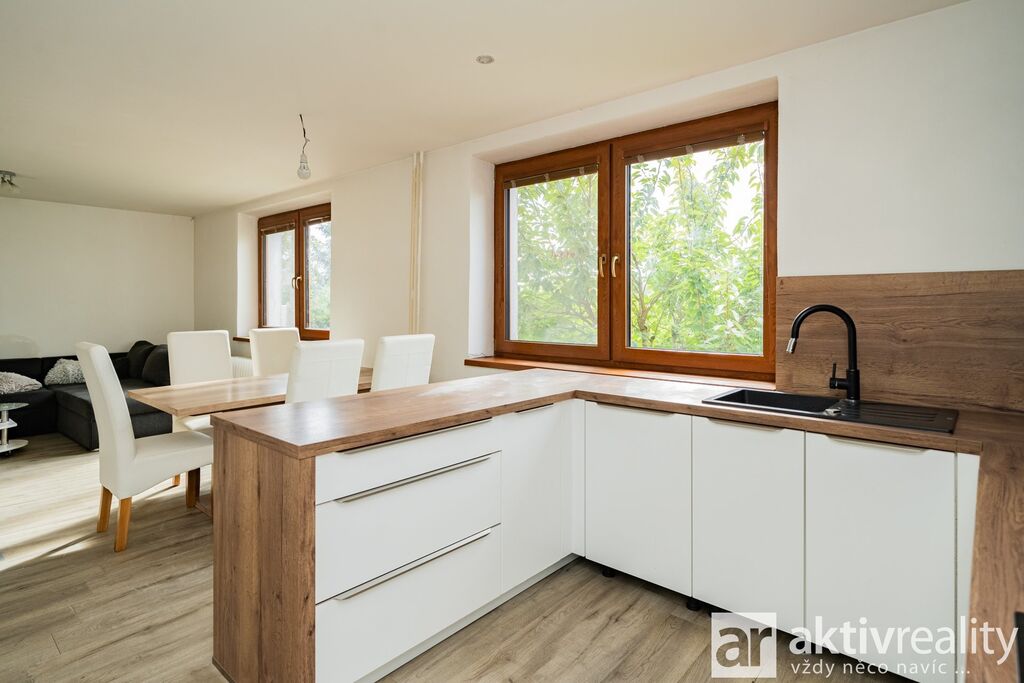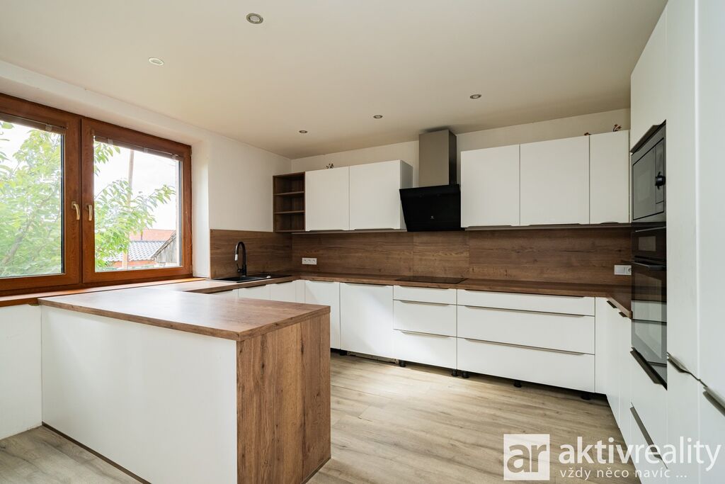 Prodej rodinného domu v klidné mělnické části Vehlovice. Nabízí velkorysý vnitřní prostor s dispozicí 4+kk, samostatnou garáž, a pořádně velikou zahradu, jakou u novostaveb jen tak nemáte. Stavba má za sebou už řadu nákladných investic a nyní hledá nové majitele, kteří vše dokončí. Podrobné informace o nabídce najdete na webu viz video. V přízemí se dnes bydlí. Otevřený obývací pokoj s kuchyní vznikl vybouráním příčky a tvoří přirozené centrum domu. Dále je zde samostatná ložnice, koupelna s vanou i sprchovým koutem, samostatné WC a prostorné zádveří. V 1. patře jsou dva velké pokoje, z jednoho je průchod do šatny. Třetí, menší místnost nyní slouží jako provizorní pracovna, ale může z ní být větší šatna nebo horní koupelna. Patro je rozpracované a čeká na dokončení dle projektu. Obytná plocha přízemí a patra má 138 m². Sklep pod celou plochou domu přidává přes 62 m² užitné plochy včetně techniky (zásobníky k tepelnému čerpadlu), pračky, sušičky a velkého úložného prostoru. Mimo dům je navíc ještě zahradní sklep. Technika: kompletně nová elektroinstalace a rozvody, plastová okna s trojskly, vytápění tepelným čerpadlem (instalace před 4 lety) a krbem s vložkou, vyvložkovaný komín, rozvody tepla do patra, rozvody LAN. Zahrada je rozlehlá a soukromá, s travnatou plochou, zapuštěným bazénem s krytím, dřevěnými boudami a samostatnou velkou garáží. Vehlovice nabízejí klid, autobusovou linku, místní hospodu, dětské a fotbalové hřiště i workout zónu. Za kopcem začíná přírodní park Rymáň a navazuje CHKO Kokořínsko. Podrobné informace o nabídce najdete na webu viz video.