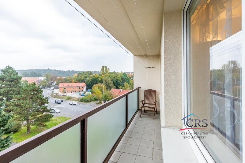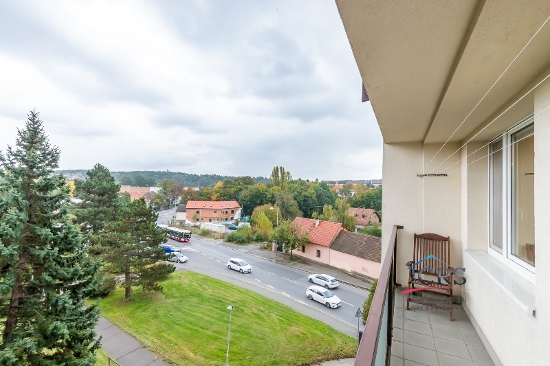 Prostorná lodžie přes celý obývací pokoj a ložnici, orientovaná na východní stranu.