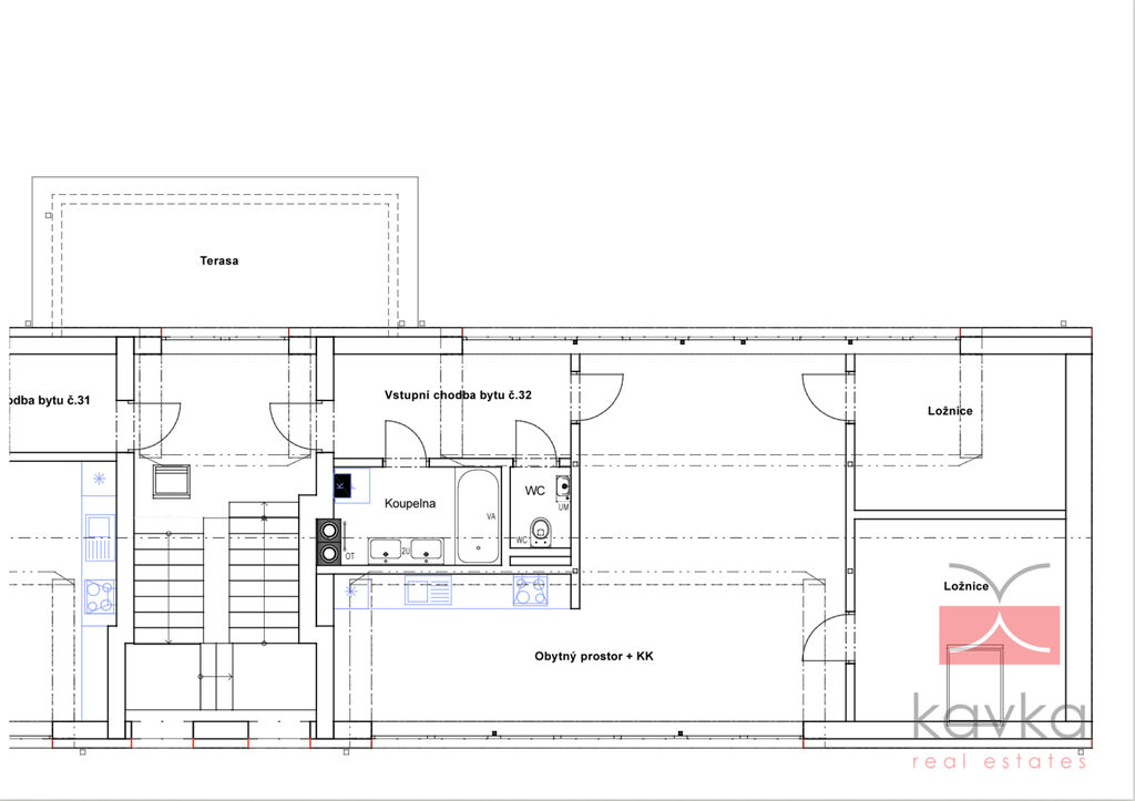 KAVKA REAL ESTATES Vám exkluzivně zprostředkují k pronájmu nový byt o dispozici 3+KK, užitné ploše 83,13 m² v centru města Humpolec. Byt se nachází v 3.NP třípodlažního nově realizovaného bytového domu o 6-ti bytech a je bez výtahu. U realizace tohoto objektu je kladený důraz na moderní a pohodlné bydlení v centru města Humpolec. Dispoziční členění: vstupní chodba, koupelna (vana), samostatné WC, kuchyň + obývací pokoj, pokoj č.1, pokoj č. 2. Součástí bytu je společná terasa (6,87 m2) s nádherným výhledem do okolí a sklepní kóje v suterénu bytového domu. Dále je zde možnost pronájmu venkovního parkovacího stání. Vytápění a ohřev vody je řešeno kondenzačním plynovým kotlem (podlahové vytápění) v kuchyni je ohřev vody řešen přes průtokový ohřívač. Nízké provozní náklady. Velmi dobrá lokalita. Kolaudace 2025. Veškerá občanská vybavenost nedaleko bytu. V případě zájmu o více informací či prohlídku kontaktujte makléře společnosti.