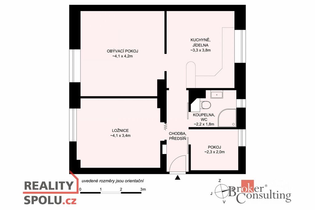 Dispozice bytu je praktická a přehledná – prostorný obývací pokoj, samostatná kuchyně s jídelnou, ložnice, menší pokoj (vhodný jako dětský nebo pracovna) a vstupní chodba. V obývacím pokoji je položena plovoucí podlaha, v koupelně je komfortní elektrické podlahové vytápění. O vytápění bytu se starají úsporné mramorové panely, které zajišťují příjemné teplo a nízké měsíční náklady na bydlení.