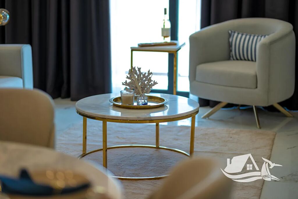 Moderní apartmán 2+kk s balkonem a krásným výhledem na moře a bazén. Nachází se jen pár kroků od pláže, nabízí soukromou pláž, venkovní bazén, fitness,  sky bar a barbecue zónu.