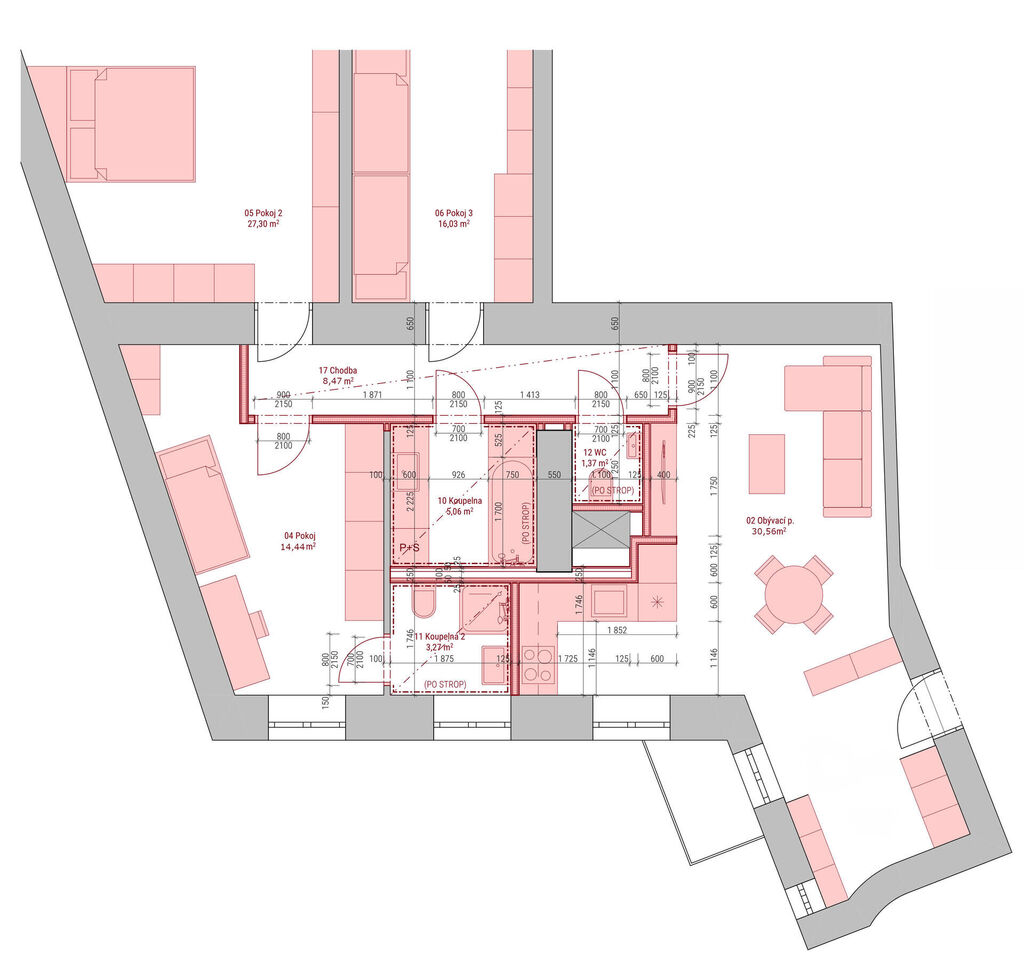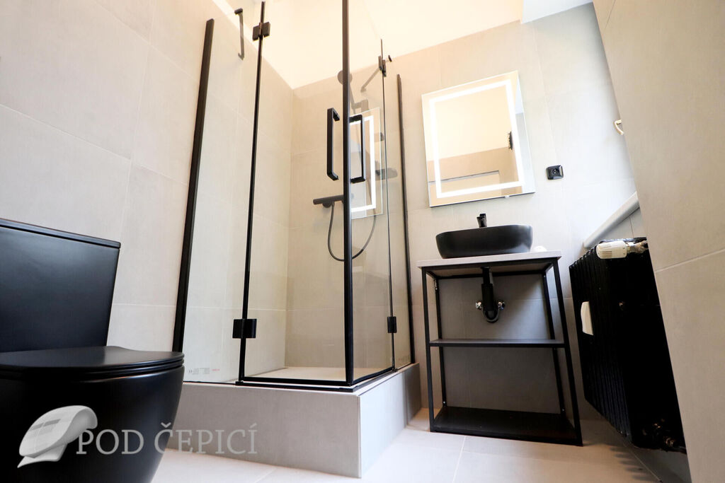 Byt se nachází ve 3. patře cihlového domu. Jednotka je v dispozici 4+kk a s plochou 110m2 se 2 balkóny nabízí štědrý prostor k žití. Pokoje jsou neprůchozí, jak ukazuje přiložený půdorys. Při rekonstrukci majitel vybudoval samostatné WC a především 2 koupelny (v jedné najdeme další WC), vybavené elegantní černou sanitou, které zajistí pohodlné bydlení i náročnějším nájemníkům.