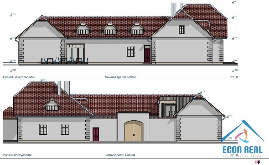Půda je vyčištěná od dlažby a podsypu. Jímka je řešena s přepadem k čističce sousední nemovitosti, v návrhu řešení jsou i solární panely a tepelná čerpadla , která ze stavby dělají tzv. "ostrov" bez jakékoliv potřeby z venčí. Nemovitosti nejsou součástí obchodního majetku. Pro více informací kontaktujte makléře nemovitosti. Stavební povolení v ceně bude předáno dle potřeb zájemce. Možné využití nemovitostí jak pro podnikání, tak i pro vlastní bydlení.