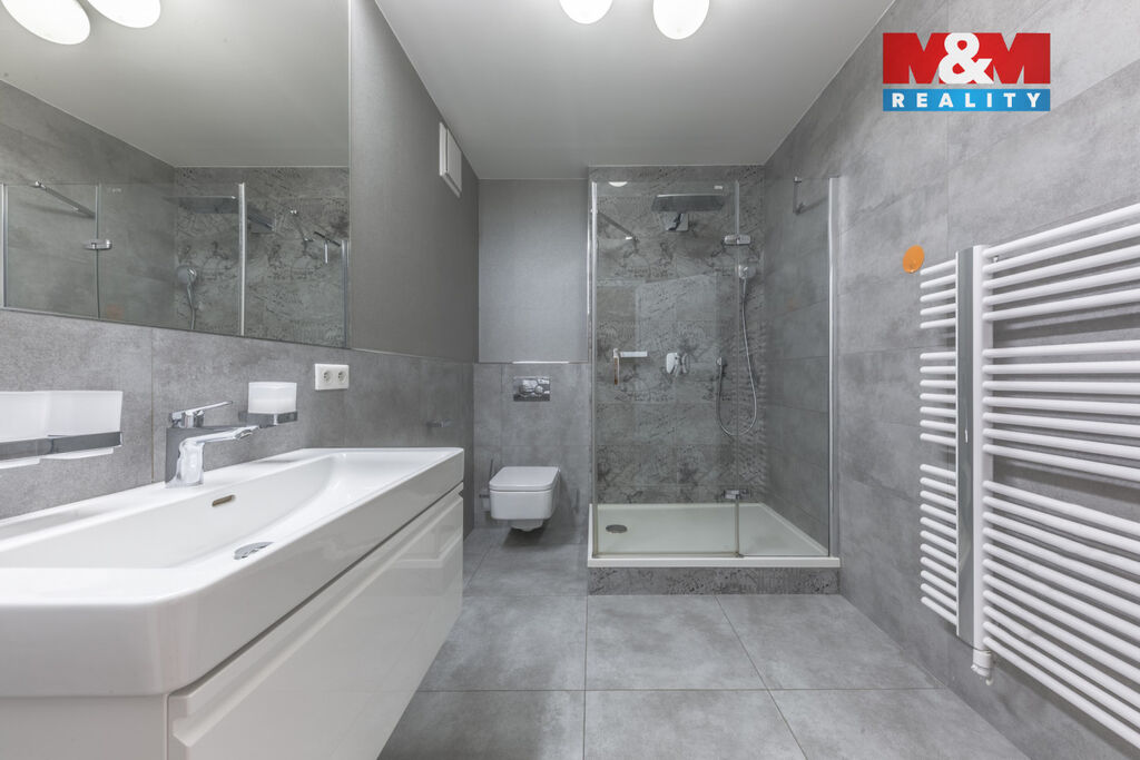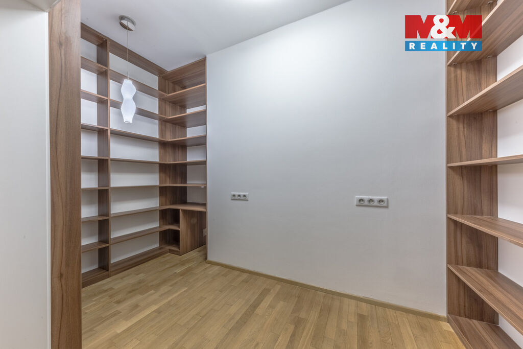 V přízemí se nachází prostorný obývací pokoj s nadstandardně vybavenou kuchyňskou linkou, jídelnou a vstupem na velkou terasu. Dále bar s vinotékou, pracovna, krb, toaleta, úložný prostor a vstupní chodba. V patře jsou tři ložnice, z nichž dva s vestavěnou šatnou. Dvě menší šatny jsou poté na chodbě. K dispozici jsou dvě koupelny s toaletou a balkon o velikosti 14 m², přístupný ze dvou ložnic. K bytu náleží dvě parkovací místa v garáži. Obyvatelé mohou využívat společnou zahradu s posezením a sdílenou saunu. Dům se nachází v oblíbené lokalitě Praha 6 – Břevnov s výbornou dopravní dostupností do centra, v blízkosti letiště i mezinárodních škol. Veškerá občanská vybavenost je v dosahu.