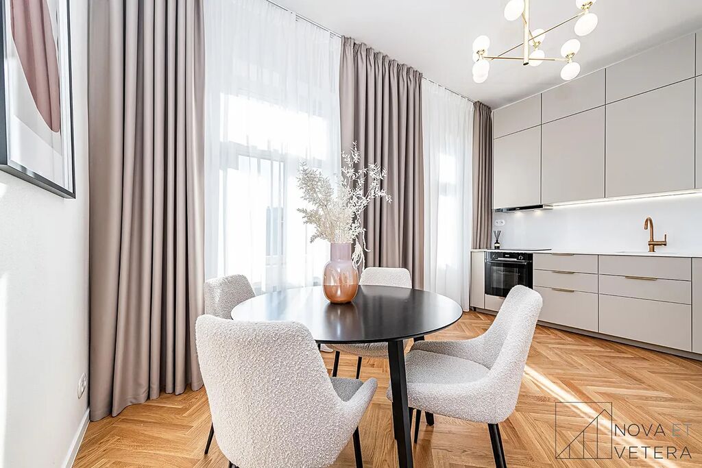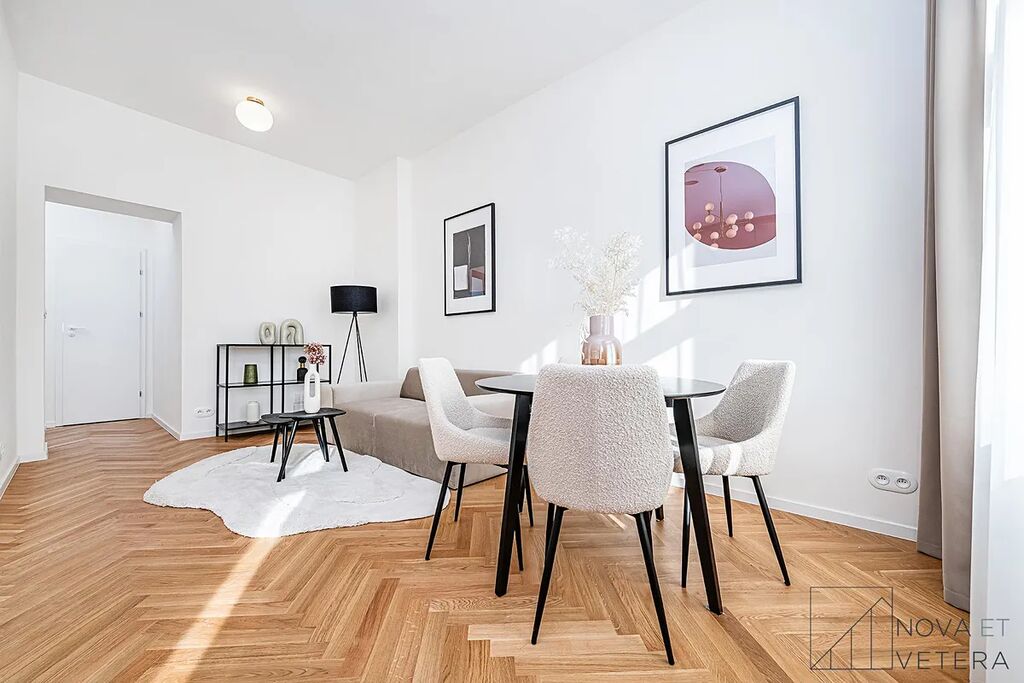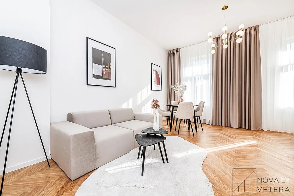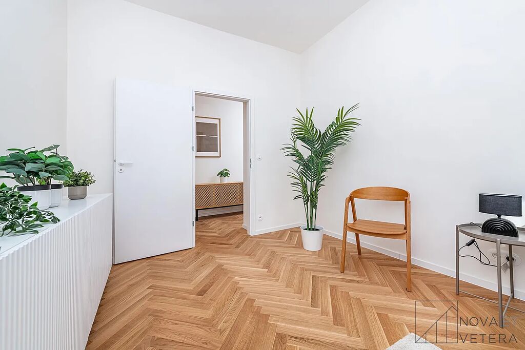 Vysoký standard kompletní rekonstrukce zahrnuje nové rozvody elektřiny, vody a odpadů. Dále rekonstrukce zahrnuje dřevěné parketové podlahy, kvalitní velkoformátové obklady a dlažbu od italského dodavatele MARAZZI. V koupelně a na toaletě naleznete sanitu značky GROHE. Moderní kuchyňská linka disponuje mimo jiné kvalitními spotřebiči značky BOSCH, kameninovou pracovní deskou na míru a zapuštěným granitovým dřezem.