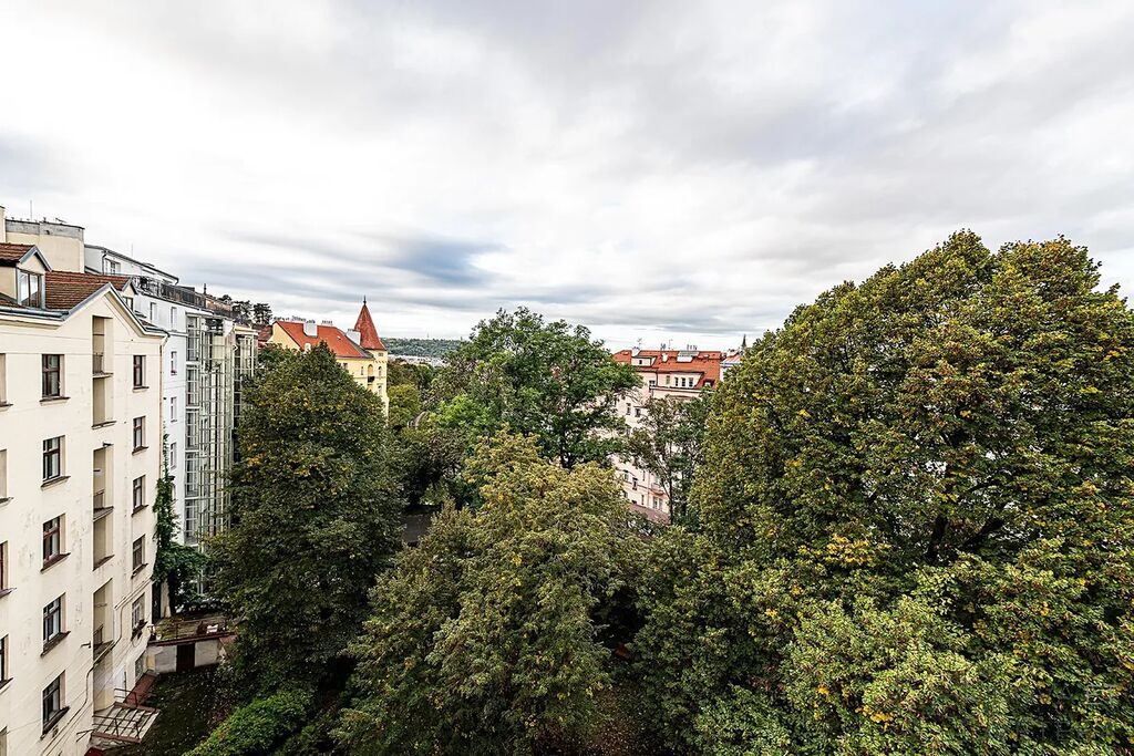 Přímý majitel nabízí k prodeji prostorný a světlý byt 2+kk o celkové rozloze 48 m², umístěný v 4. nadzemním podlaží udržovaného cihlového domu. Byt je orientován do klidné zahrady plné vzrostlých stromů. Díky vysokému patru je výhled zcela otevřený, bez přímých sousedních budov – poskytuje dostatek soukromí i přirozeného světla.