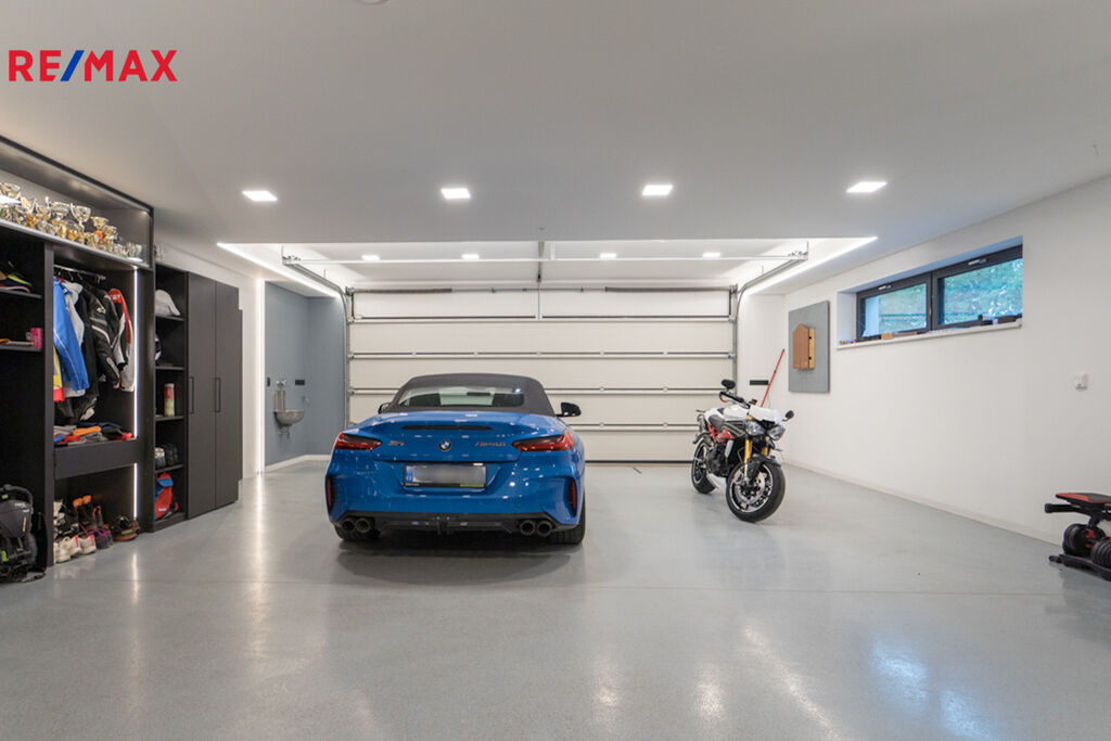 Na úrovni příjezdu se nachází suterén s garáží pro 4 vozy, koupelnou, skladem a technickou místností. I tato část domu je řešena s důrazem na komfort a praktické využití.