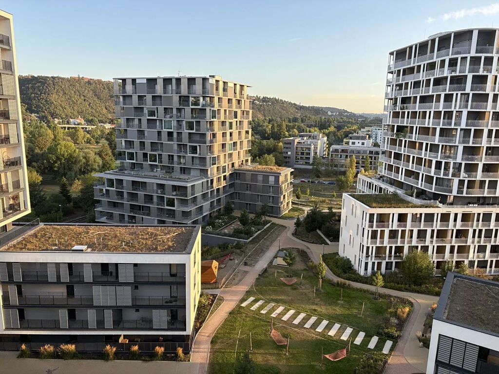 Světlý byt s nadstandardní plochou v 10. podlaží a výhledem na Vltavu a Barrandovské terasy je součástí nového rezidenčního projektu Zahálka. Nabízí obývací pokoj se vstupem na západně orientovaný balkon do zeleně, tři ložnice, dvě koupelny (vana i sprcha), komoru a vstupní halu. Tento moderní areál poskytuje energeticky úsporné komunitní bydlení, kvalitně upravená veřejná prostranství a bohaté možnosti sportu i relaxace v blízkém okolí.