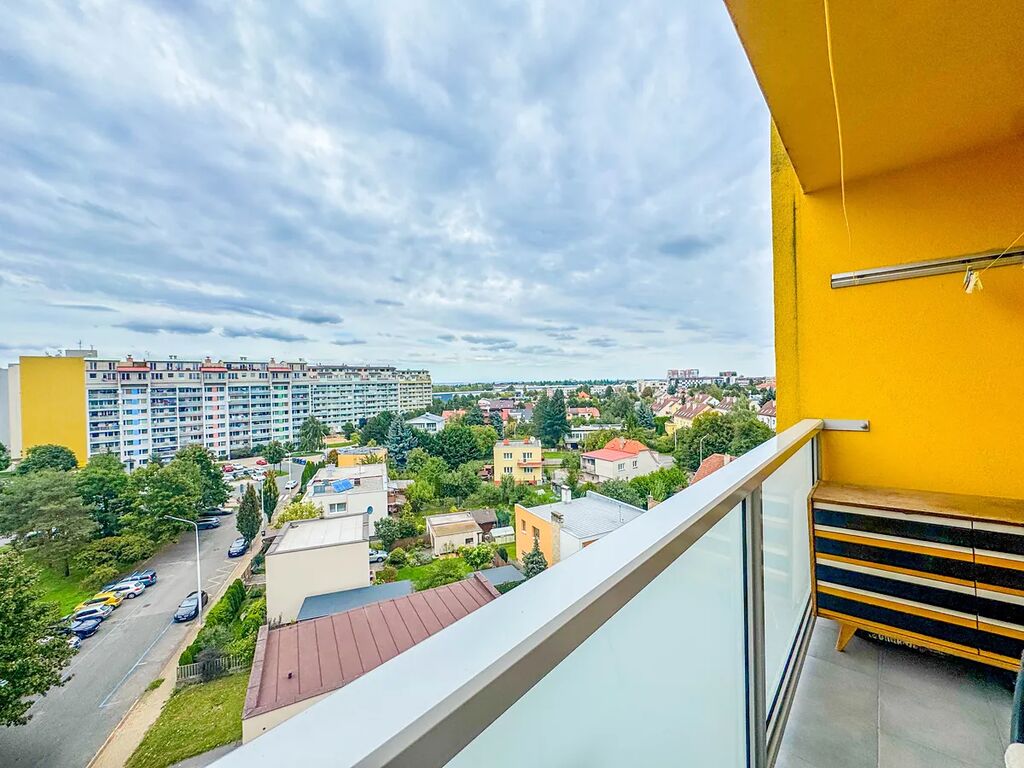 Byt se nachází v osmém patře skvěle udržovaného panelového domu s designovými výtahy značky Schindler na ulici Křivoklátská v Praze.