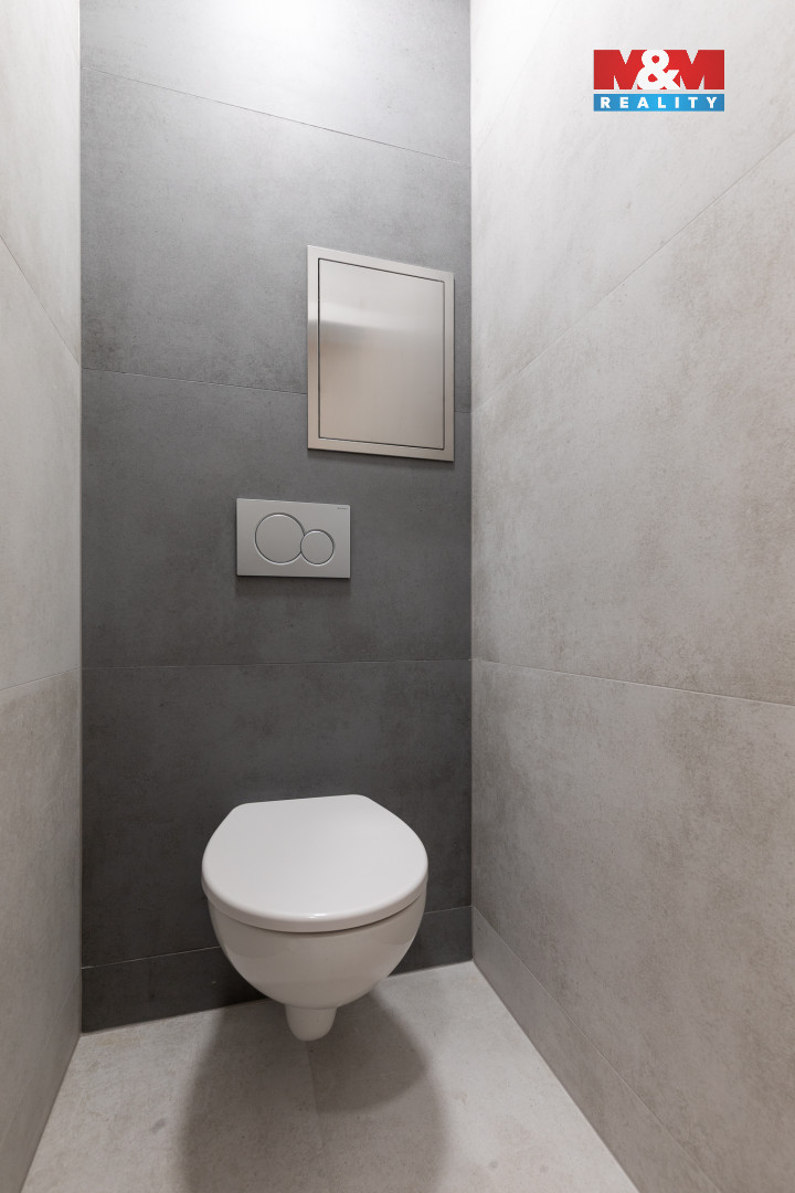 Díky dispoziční změně zvětšená koupelna s technickou místností a novou sanitou