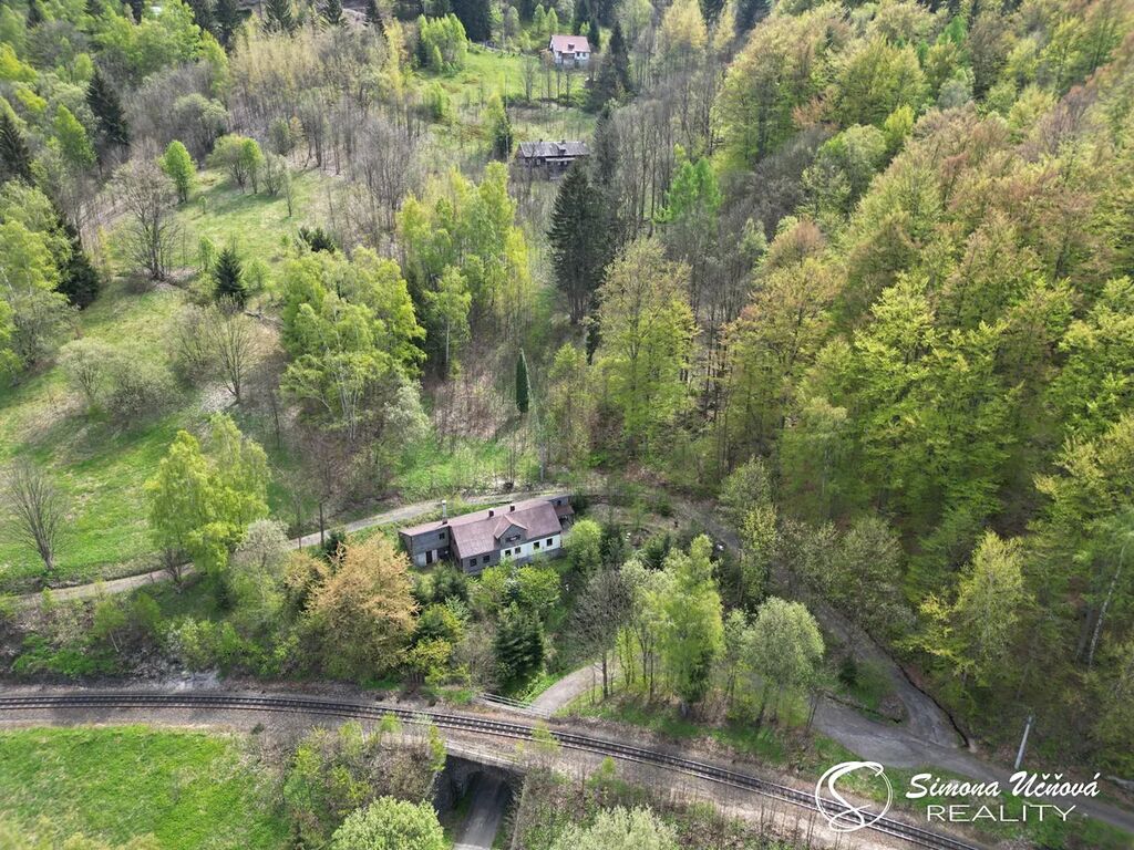 Nabízíme ke koupi rodinný dům / chalupu, se zast. plochou 195 m2, umístěnou na samotě a obklopenou bukovým lesem. Dům je dispozičně řešen jako 7+1, 3x wc, 3x koupelna + úložné a technické zázemí. Je částečně podsklepen a menší půda je vhodná jako úložný prostor. Pozemek o celkové výměře 5.928 m2 je převážně zalesněný.