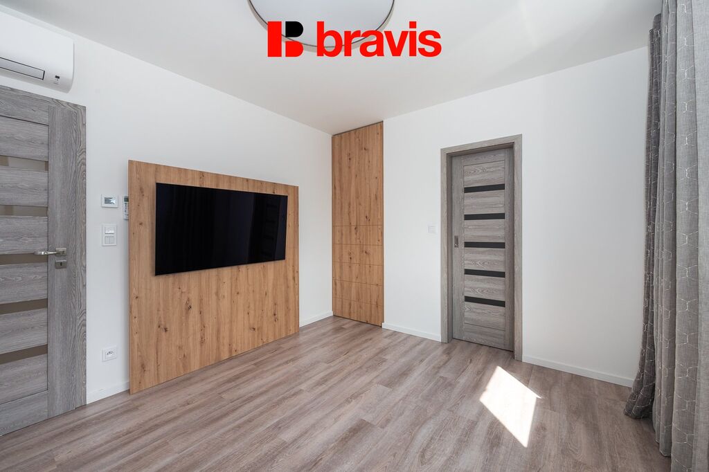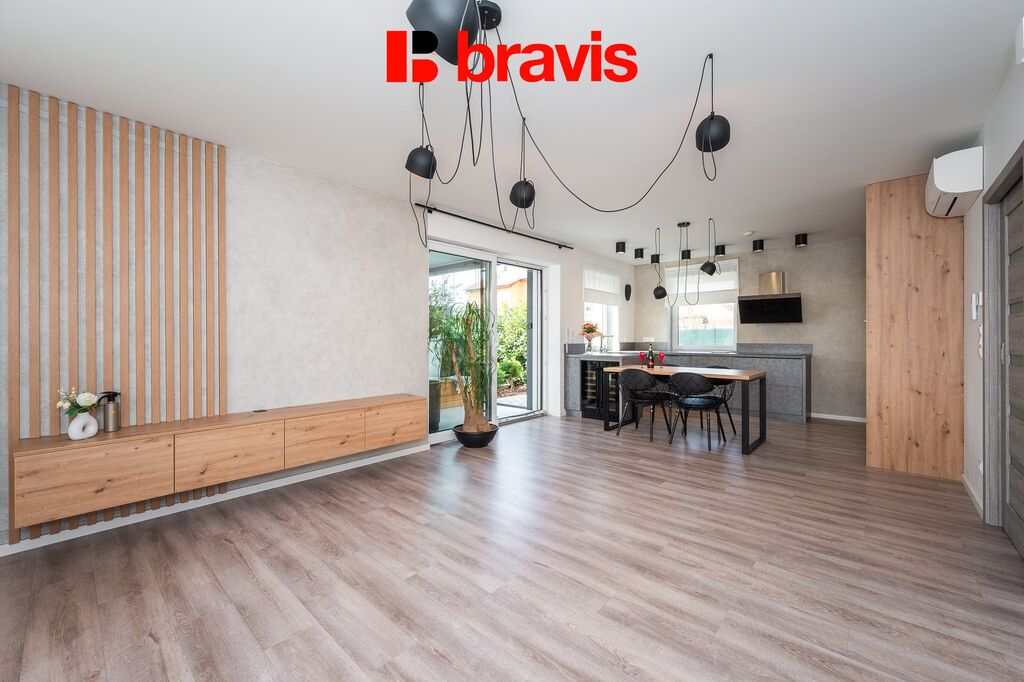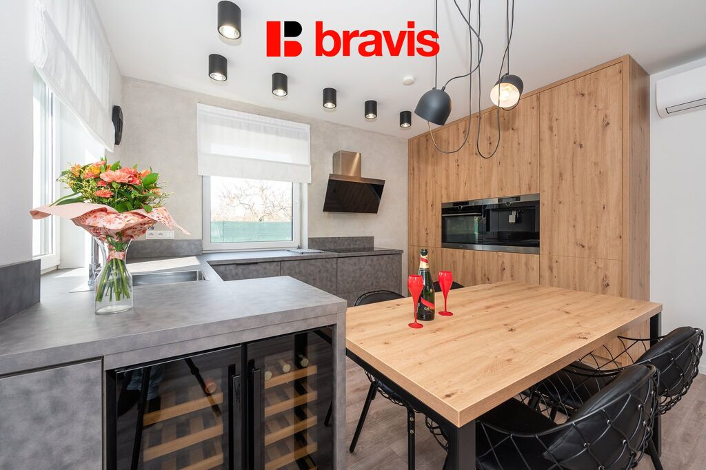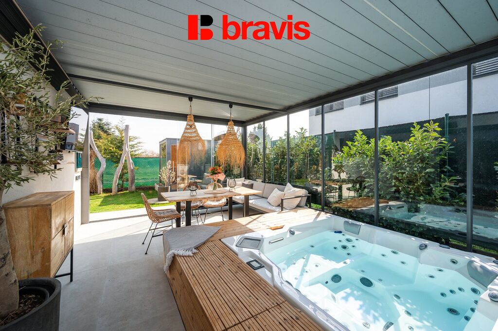 Srdcem domu je kuchyň, zařízená kuchyňskou linkou dělanou na míru, vybavená veškerými spotřebiči (lednice, myčka, sporák, trouba...), na ni navazuje prostorný obývací pokoje, ze kterého je vstup na moderní terasu s vířivkou a zabudovaným audiosystémem. Dále zde najdete ložnici, která má svoji vlastní šatnu a dva další samostatné pokoje, které mohu sloužit pro děti, či jako pracovna nebo pokoj pro hosty.