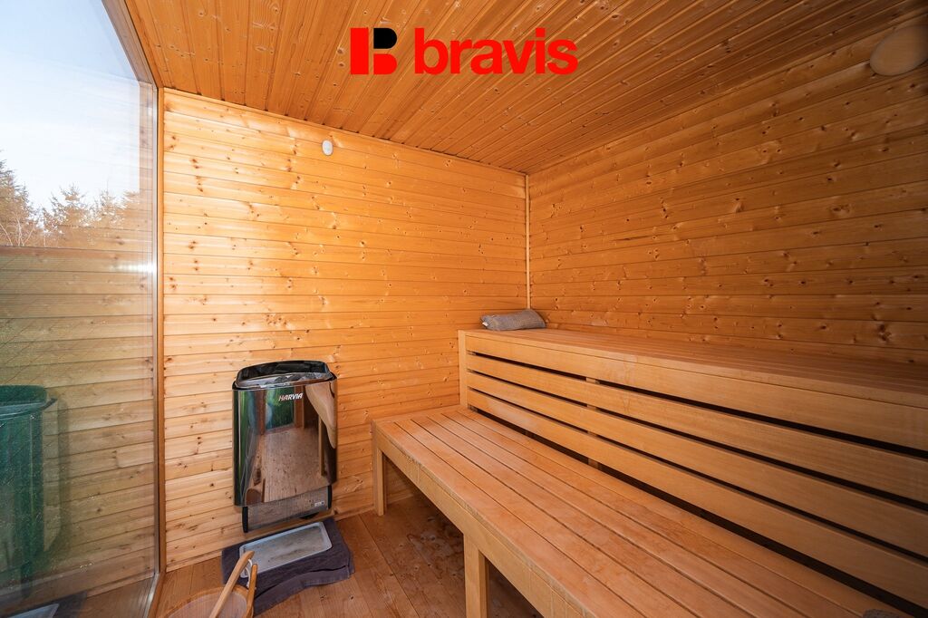 • Finská sauna až pro 6 osob a venkovní sprcha – wellness přímo doma na zahradě.