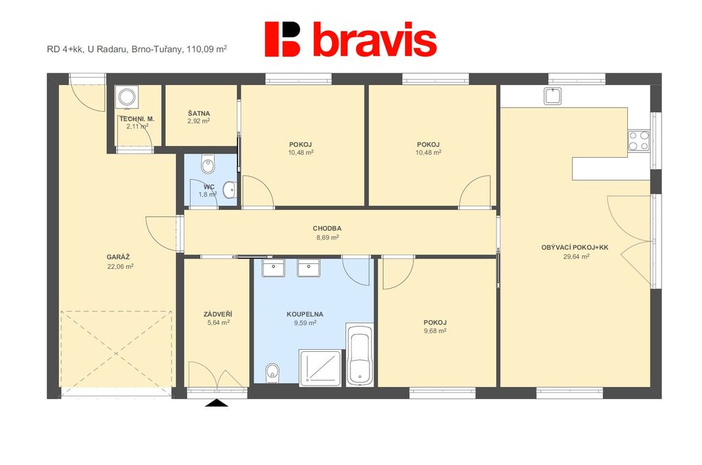 Potom právě tento prostorný, do detailů promyšlený a designově zařízený jednopodlažní rodinný dům o dispozici 4KK v klidné a vyhledávané lokalitě Tuřany, je připraven stát se Vaším novým domovem.