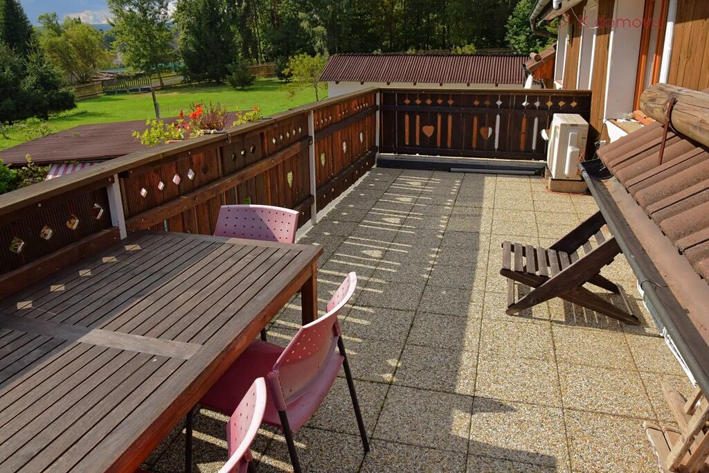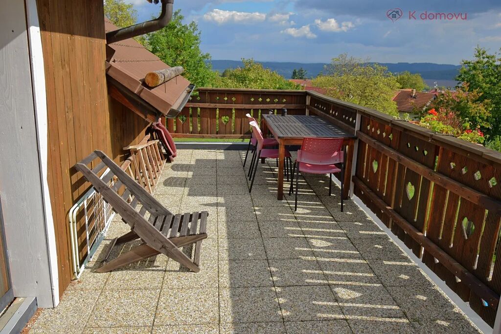 Ve druhém podlaží se nachází veliký otevřený prostor (75 m2) s kuchyňským koutem, dvě ložnice (20 m2 a 17 m2) a koupelna (8 m2) s vanou, umyvadlem a toaletou. Z ústředního pokoje se vchází na terasu o výměře 20 m2 s dech beroucím výhledem do širokého okolí.