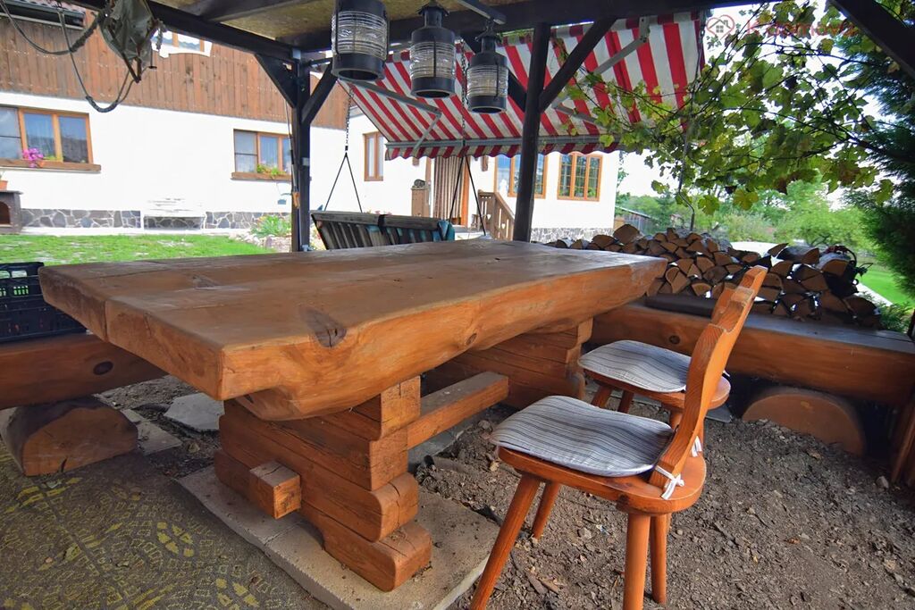 K příslušenství domu patří nový krytý bazén se slanou vodou, venkovní zastřešené posezení, dvojgaráž s elektrickými vraty a dílna (19 m2). Celý pozemek má výměru 5.821 m2, přičemž zahrada přiléhající k domu je veliká 1.093 m2, a zbývající pozemky mají celkovou výměru 3.902 m2 a jsou to tři potenciální stavební parcely.