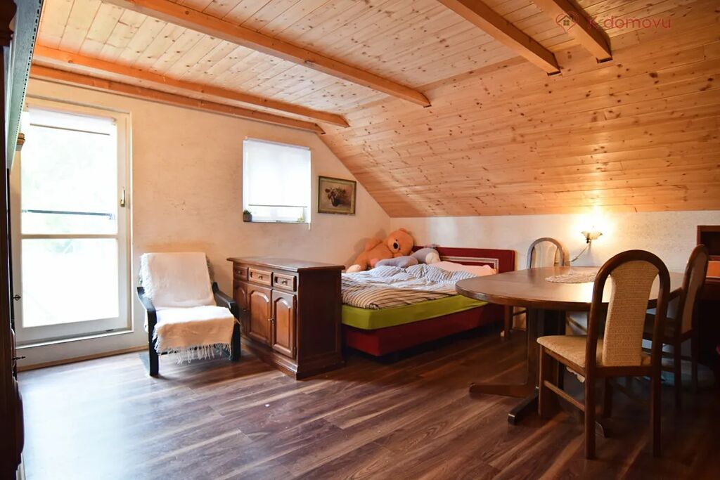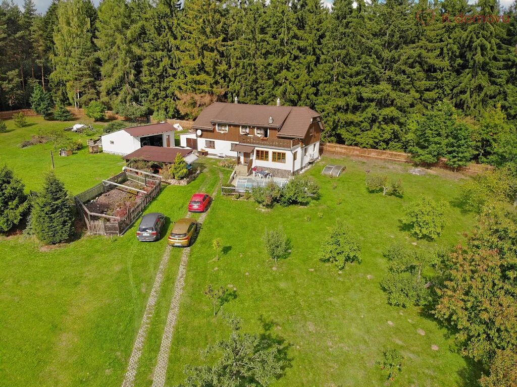 Ve výhradním zastoupení nabízíme k prodeji nadčasový rodinný dům v překrásném prostředí na okraji obce Drahlín na Příbramsku. Dvoupodlažní dům disponuje v přízemí dvěma velkými pokoji (35 m2 a 28 m2), kuchyní o výměře 21 m2, spižírnou (4 m2), koupelnou (7,5 m2) s polorohovou vanou a samostatnou toaletou. Do schodišťové haly se vstupuje prosklenou verandou (20 m2) a kromě pokojů se pod schody vchází i do prostorného podzemního sklepa (15 m2), ve kterém je umístěna domácí vodárna a filtrační zařízení k venkovnímu bazénu.