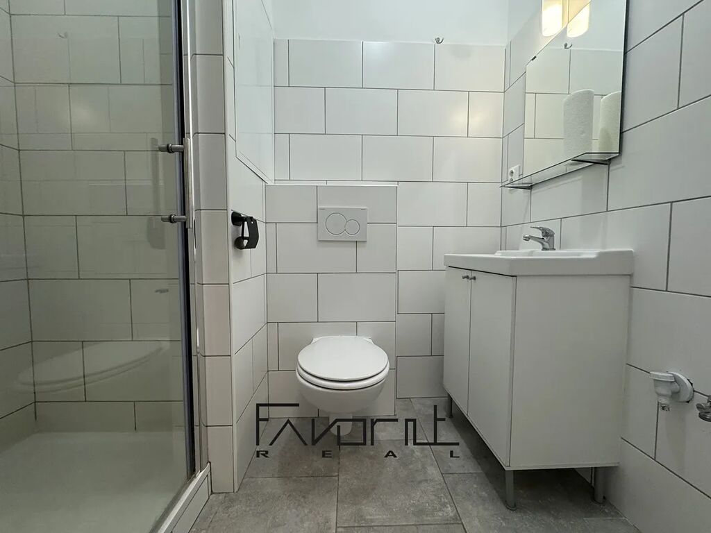 • Koupelna se sprchovým koutem, umyvadlem se skříňkou, WC a přívodem na pračku