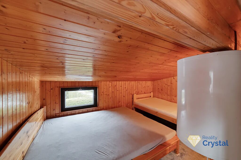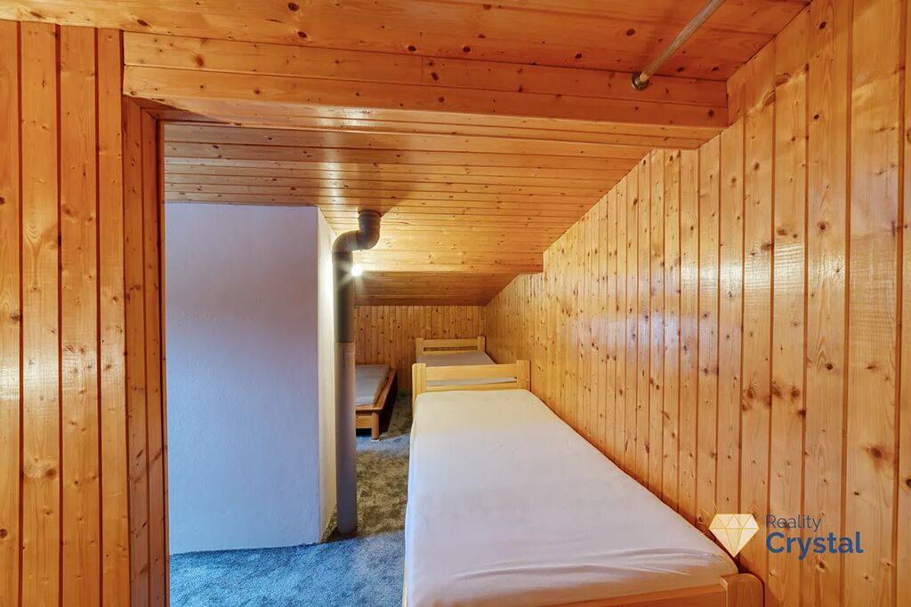 Parkování je možné před chatou na vlastním 200 m2 pozemku, nebo v garáži o rozloze 22 m2.
