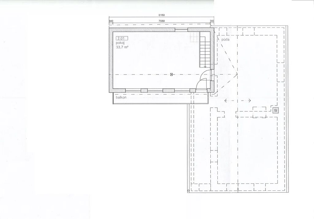 Vnitřní uspořádání nabízí uzavřenou krytou chodbu se vstupem do hlavní místnosti, ke kuchyni a dvoupatrové přístavby s velkými pokoji. Na prvním podlaží se nachází i koupelna a toaleta. Druhé podlaží se vstupem na balkon nabízí příjemně prostorný pokoj a vstup na půdu. Půda je snadno využitelná k dalším obytným možnostem.