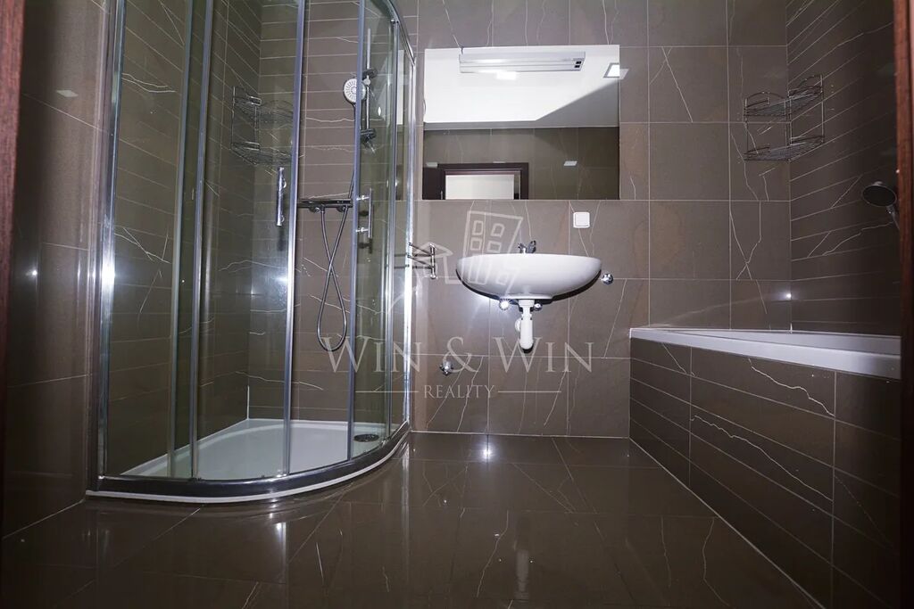 V celém bytě se nachází vinylová podlaha s podlahovým vytápěním, v koupelně italské velkoformátové obklady s vysokým leskem, v pokojích vestavěné skříně vyrobené od truhláře na míru a v chodbě v zádveří šatna opět vyrobená na míru od truhláře.