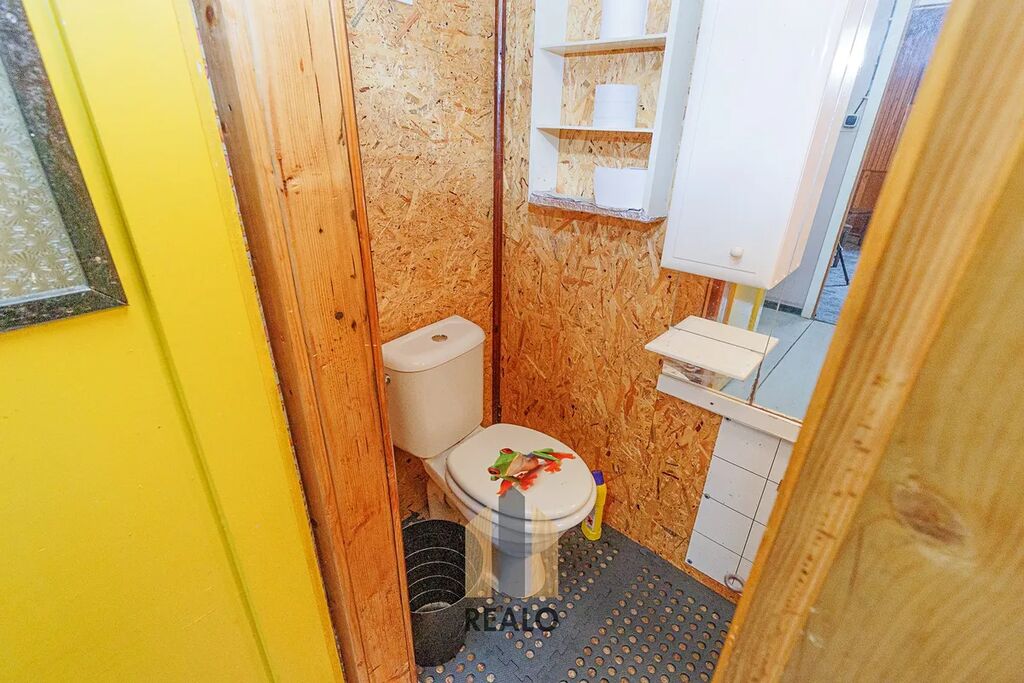 V přízemí se nachází kuchyň, obývací pokoj rozdělený na dvě části, koupelna se sprchovým koutem a WC.