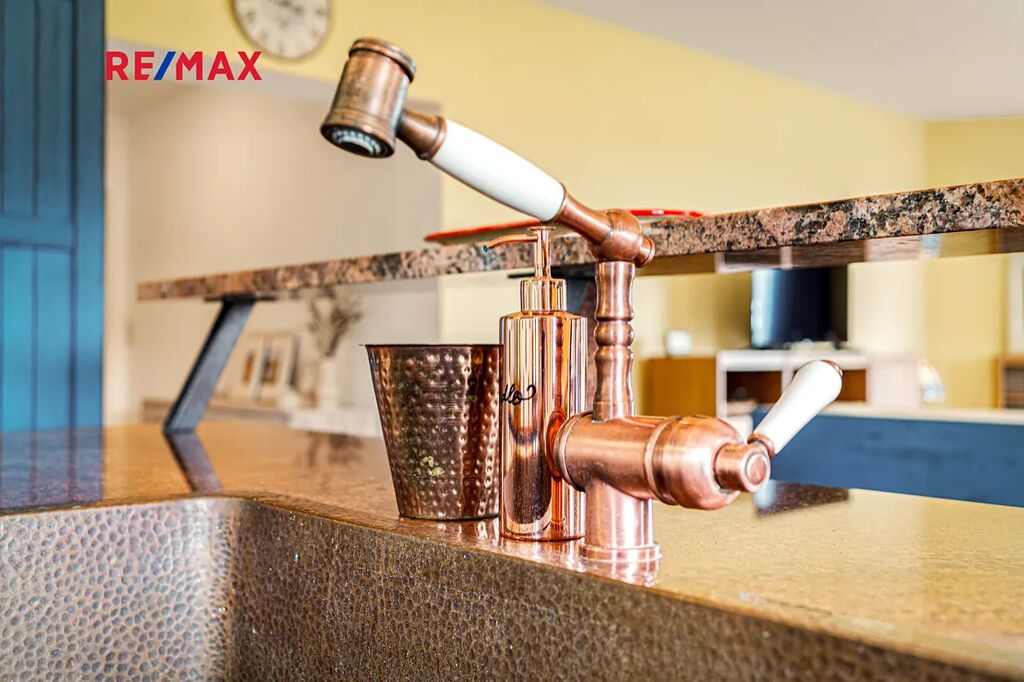 Technologie zajišťují pohodlí i soběstačnost: podlahové topení, tepelné čerpadlo Daikin, infrasauna, klimatizace, vlastní studna s čističkou vody, elektrická posuvná brána. V interiéru zaujme kuchyňská linka s deskou z brazilské žuly i zakázkové dveře z masivu.
