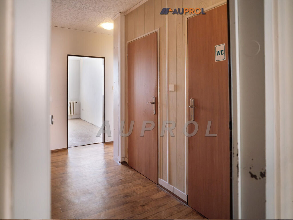 Rozvržení bytu: Pokoj 1 - 16,6 m², pokoj 2 - 10,5 m², kuchyň s el. sporákem - 5 m², předsíň - 7,4 m², koupelna s vanou 2 m², WC - 0,8 m², sklep 3 m 2.