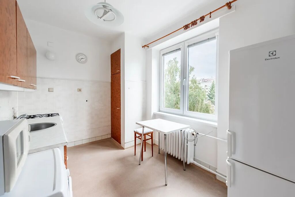 Byt není příliš vybaven a umožňuje tak novému nájemníkovi vytvořit si domov podle svého vkusu a představ. Nyní je mu k dispozici vybavená kuchyňská linka s lednicí, pračkou, mikrovlnnou troubou, stolem a židlemi. V chodbě jsou dále praktické vestavné skříně, vše ostatní ´bude již věcí nájemce. Vytápění i dodávka teplé vody jsou centrální - tedy pohodlné a bez starostí, plyn slouží pouze k vaření. K bytu náleží sklep a v domě je k dispozici kolárna. Dům má dva vstupy, nachází se jen pár kroků od Bělohorské ulice s množstvím kaváren, obchodů a restaurací. V pěším dosahu je Ladronka, Kajetánka i Břevnovský klášter – ideální pro procházky nebo sport.