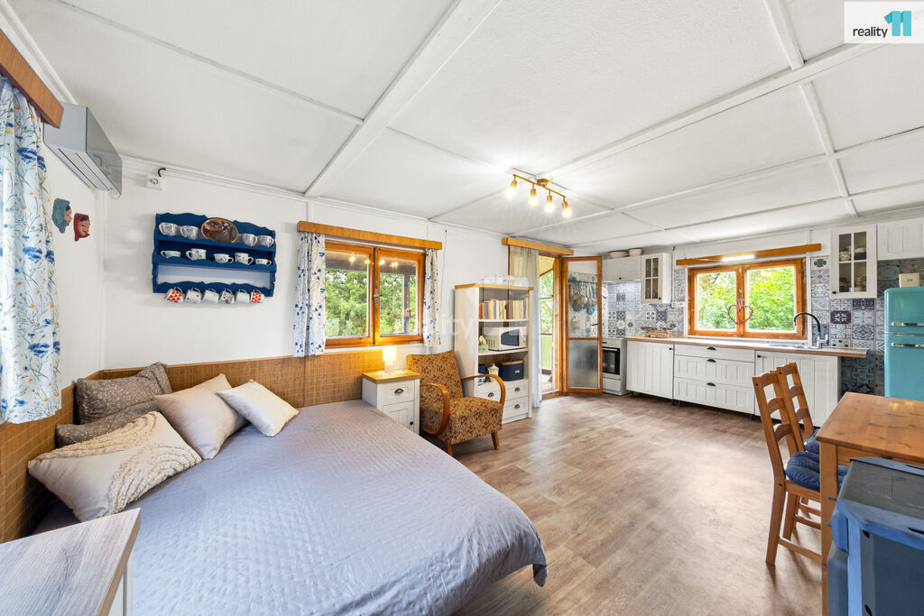 Okolí tvoří lesy, příroda a soukromí, přesto je dobře dostupné autem. Nemovitost je ideální pro víkendový odpočinek, letní dovolenou nebo celoroční relax v přírodě. Ev. číslo: 27835.