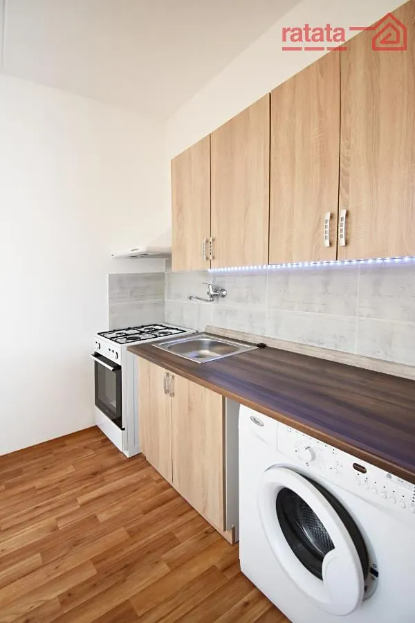 Byt je čistý a slunný. Je zde nová kuchyňská linka, plynový sporák, pračka, úložný prostor, vyklápěcí postel.