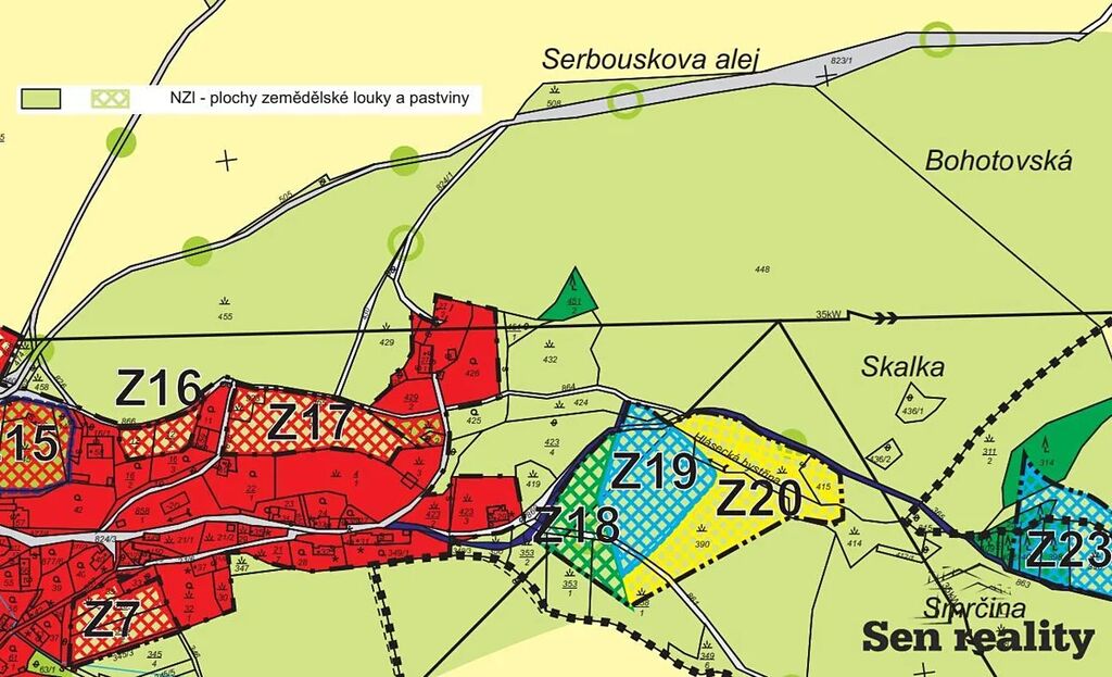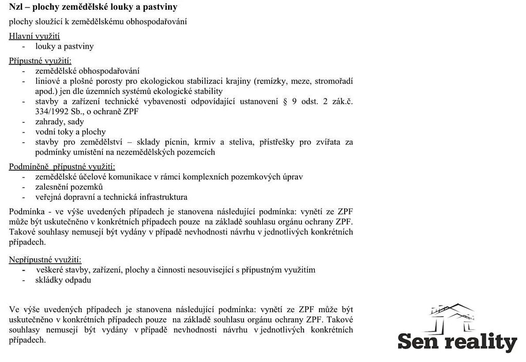 Dle územního plánu je pozemek veden s označením Nzl - plochy zemědělské louky a pastviny, podrobnější informace a přípustné a nepřípustné využití naleznete ve fotografiích.