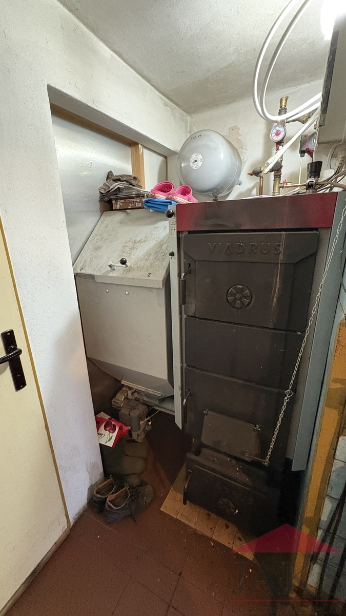 Vytápění a TUV: ÚT – automatický kotel Viadrus Hercules Duo 13 kW (4 třída kotle) na T.P. se zásobníkem na hnědé uhlí a kombinovaným el. boilerem.