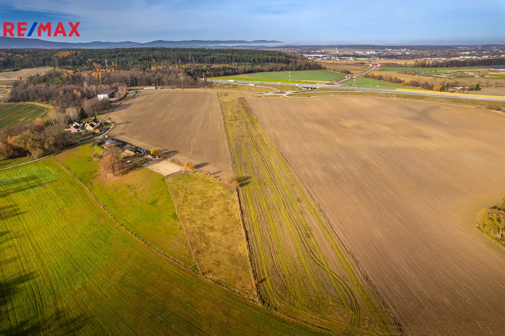 Nabízíme na prodej strategicky umístěný pozemek o výměře 37.224 m² přímo u sjezdu č. 141 z dálnice D3 (Roudné – Plav – Včelná – Letiště).