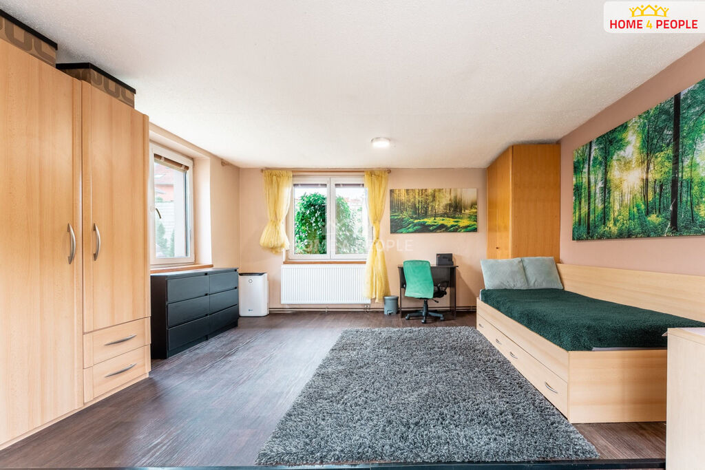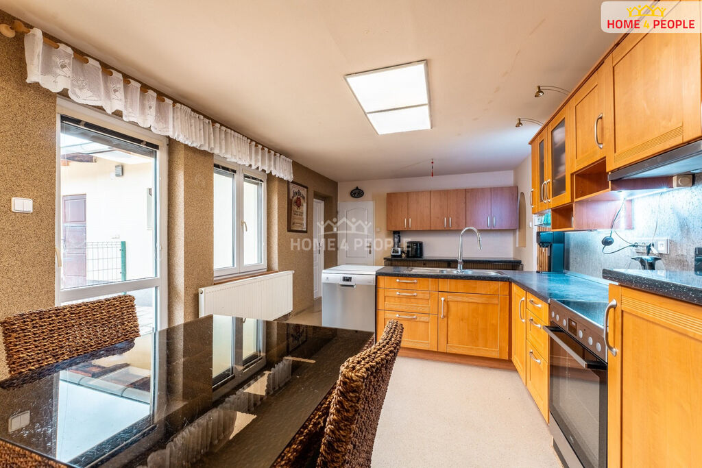 Rohový dům je vystavěn do tvaru písmene U, má vlastní boční vjezd bránou na rozsáhlý pozemek kde na zadní části pozemku je možná dostavba nebytového objektu, dvojgaráže, dílny pro podnikání v dostatečné vzdálenosti od obytného prostoru domu.