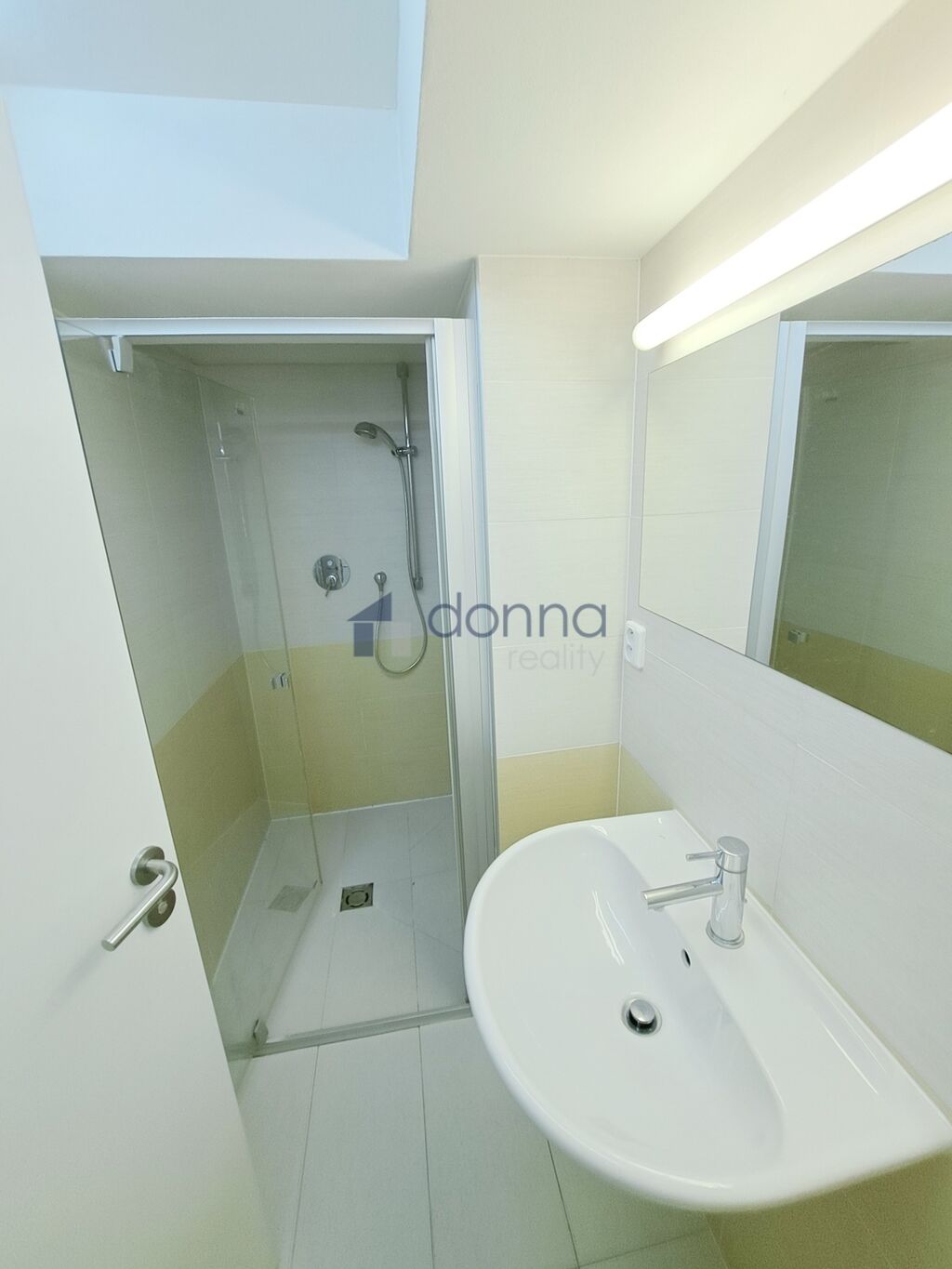 V koupelně je sprchový kout, toaleta s umyvadlem.