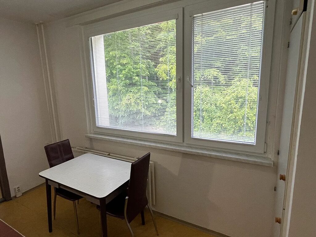 Dispozičně: Kuchyně s el. sporákem s okny na severovýchod směrem k lesu a volnokapacitnímu parkovišti za domem, prostorný obývací pokoj rovněž na severovýchod, další 2 neprůchozí pokoje na jihozápad se slunnou krytou lodžií, koupelna s vanou, samostatné WC, na chodbě se nacházejí vestavěné skříně. K bytu náleží sklep.
