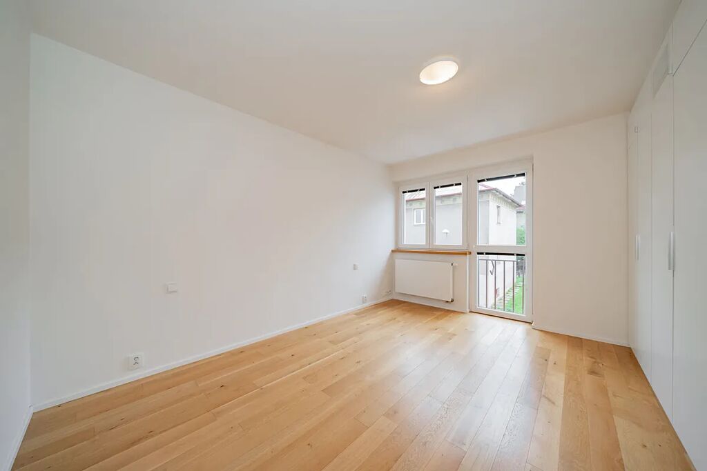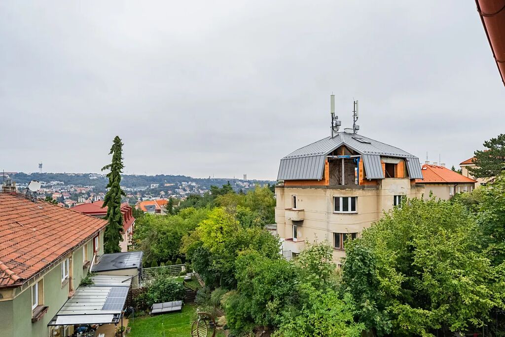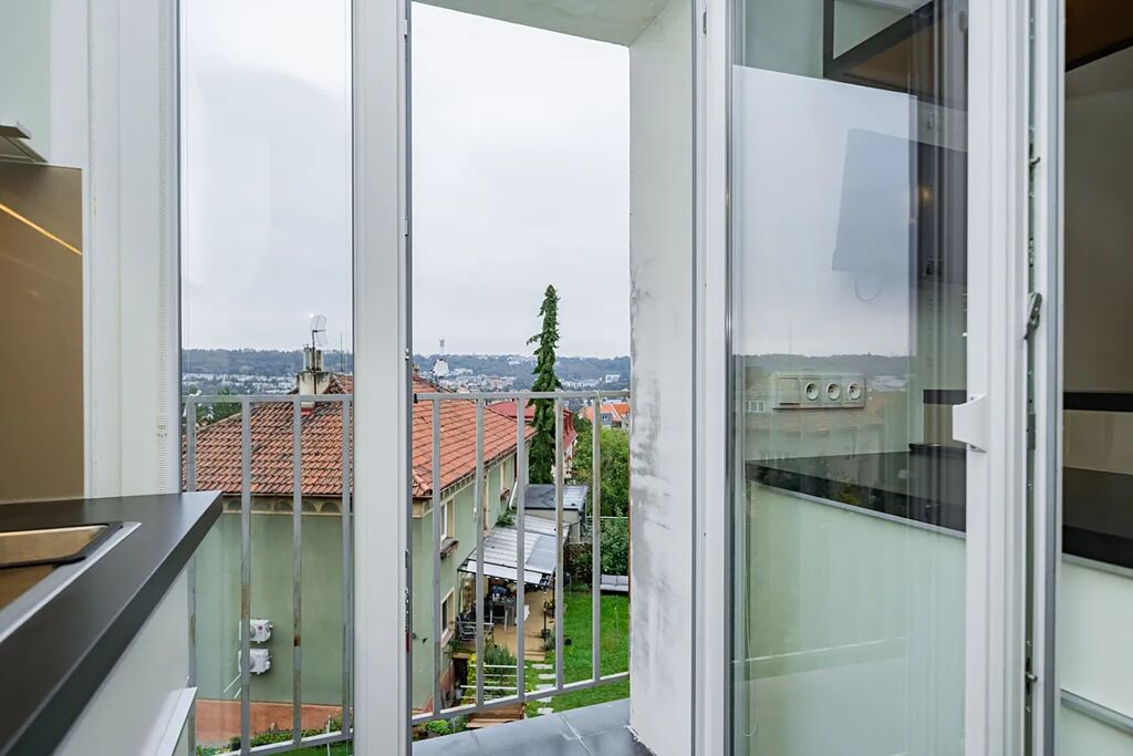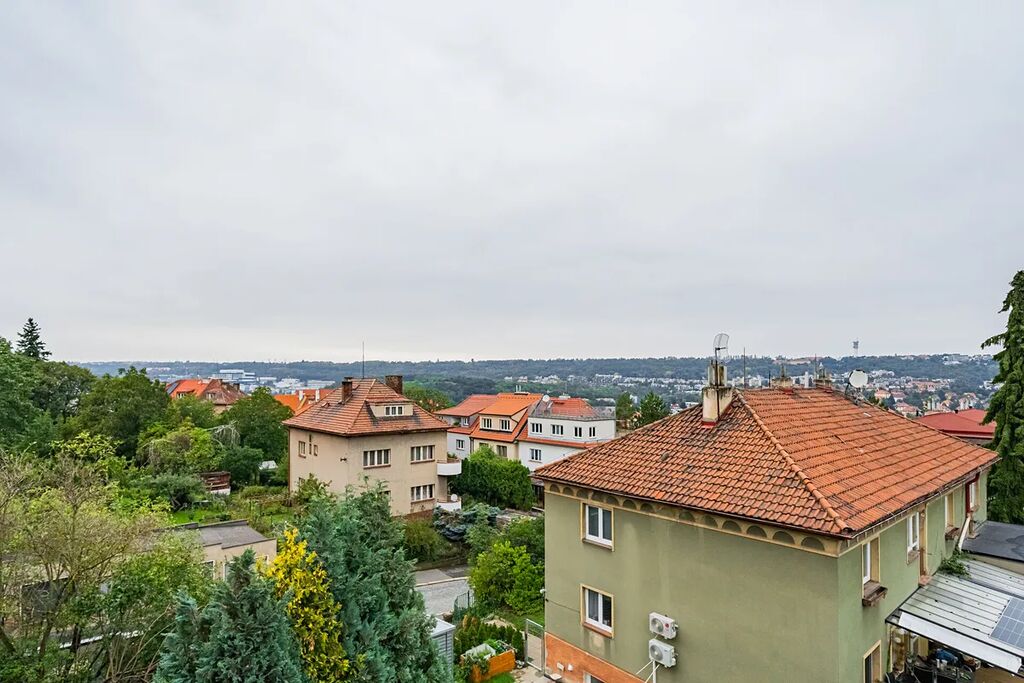 Byt je velmi světlý s orientací na tři světové strany s výhledem do okolní zeleně a s volným, panoramatickým výhledem směrem na centrum Prahy.