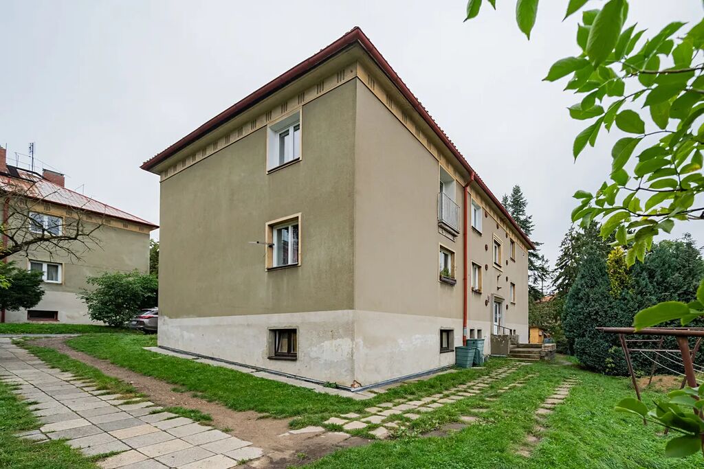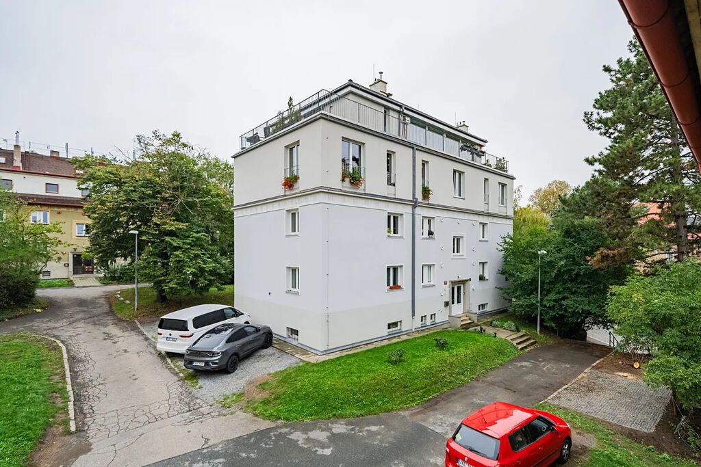 Byt se nachází ve druhém patře menšího cihlového domu v klidné ulici poblíž oblíbeného parku Cibulka.