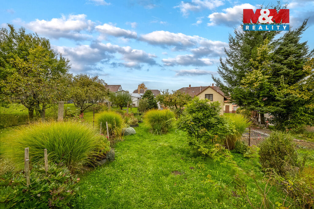 Na pozemku je starší garáž a zahradní domek. K domu patří zahrada o celkové ploše 471 m2, před domem menší předzahrádka, za domem soukromí a zadní část zahrady je okrasná. Velkým benefitem je vlastní kopaná studna.